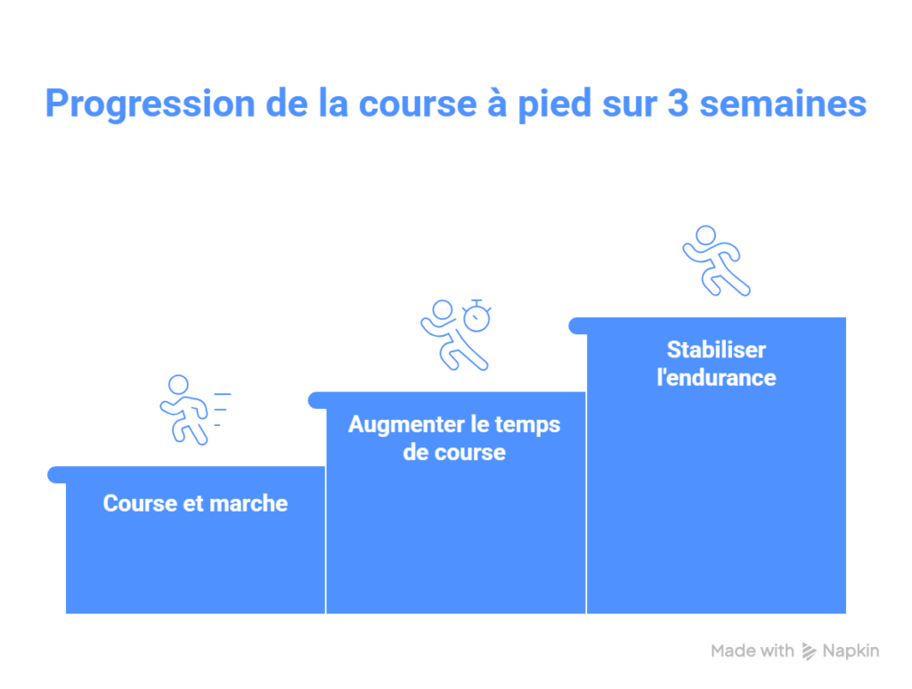 Une progression simple sur trois semaines peut déjà transformer le rapport d’un adolescent à la course à pied. La première semaine peut être consacrée à l’alternance entre course et marche, afin de trouver une allure confortable. La deuxième semaine permet d’augmenter légèrement les temps de course continue, tout en restant à une intensité modérée. La troisième semaine vise à stabiliser l’endurance, avec des séances de dix à quinze minutes de course sans arrêt.